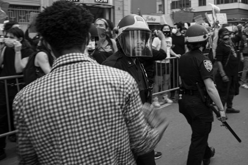 I biked to Union Square to take photos of the protesters. The need to oppose racism where there is, abuses and illegal practices by the police, impunity of the law enforcement, probably their lack of training is clear. Once there, I saw some of the protesters, with the impunity of being crowd, abusing cops that were there because they had to. I saw agents being genuinely scared, and I hoped they'd keep their calm under pressure. Was that useful to anybody, or even justified? The killing of so many African Americans by policemen is unjustifiable and unacceptable. I wonder if the BLM movement, and we all as a society, would make more progress in addressing this issue by stopping to protest "the police" as a whole (like we refuse looters and violent protesters to be representative of the entire protest movement), by trying to establish a dialog to convince people in the uniform that being accountable will make them more respected and more effective. The fact that many agents engaged in discussion with the protesters (and in some occasion even joined the protest) indicates that this path is open.